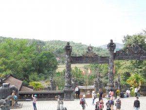 傾斜の高い石段を上がるとカイディン帝廟が見えてきます。